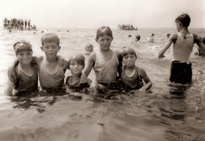 | In the water at Hyannis Port, Massachusetts, the family's summer home. |
